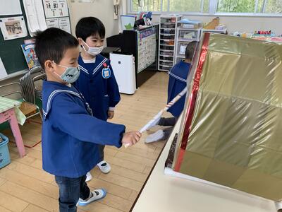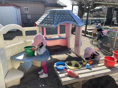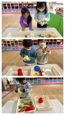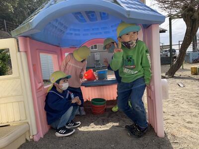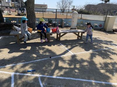 今日はあったかいのでアイス屋さんごっこの準備をしているようです