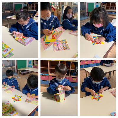 1年間、月刊絵本のお話を見たり、迷路遊びやぬりえをしたりして頑張りました!