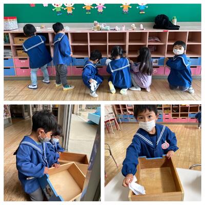 次の学年のお友達が使えるように、ロッカーをピカピカに拭きました!