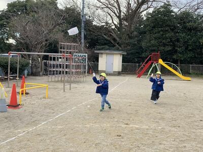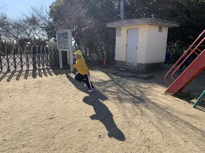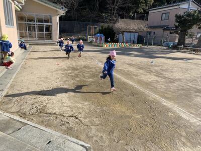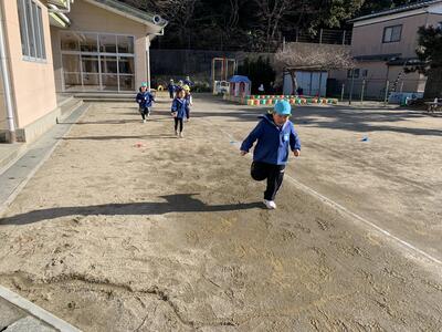 5歳児は園庭を大きく4周!