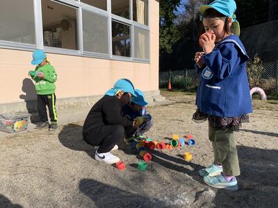 早速こどもたちは戸外で元気に遊びました