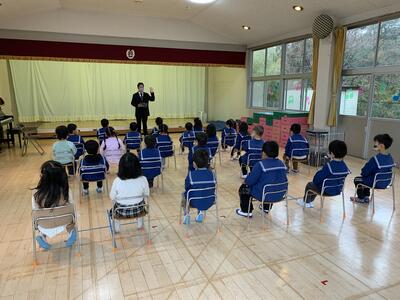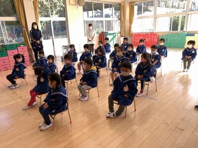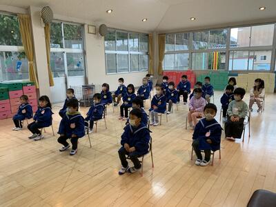 年長さんは小学校に向けて正しい姿勢で座っています。素晴らしいですね