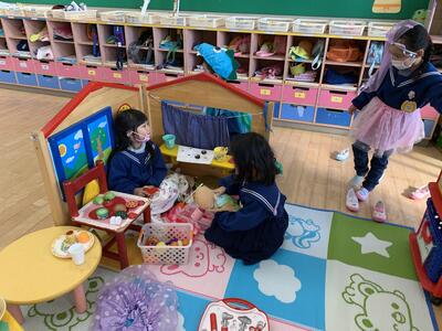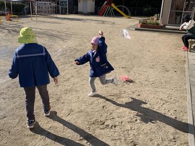 戸外では発表会ごっこや鬼ごっこを楽しんでいました。