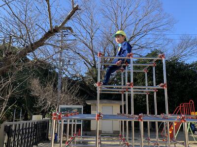 ジャングルジムのてっぺんでちょっと一休み