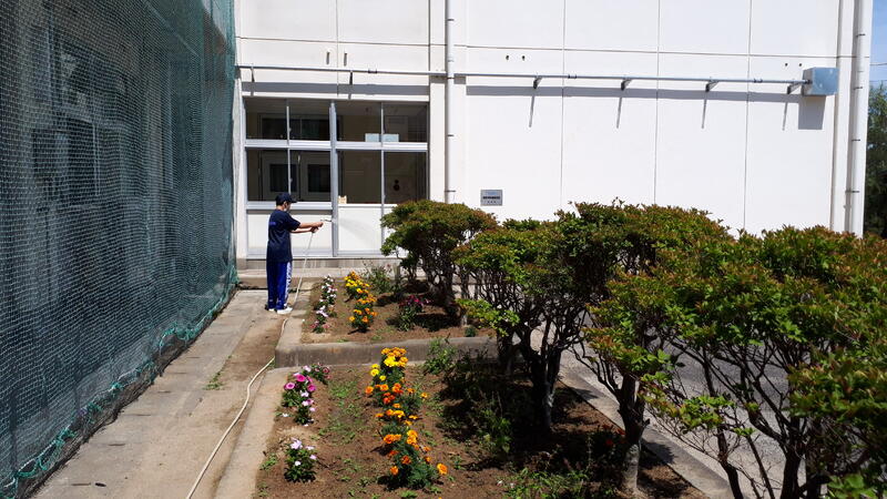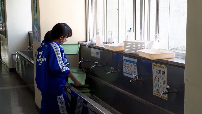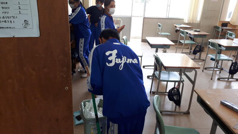 昼食後、美化担当者が、掃除用具入れの中を片付けてくれています。