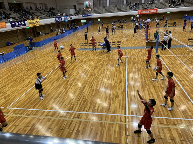 〇福島市の「あづま総合体育館」で行われている男子バレーボールの一回戦で、藤間中チームは小野中チームにセット数2-0で勝ちました。