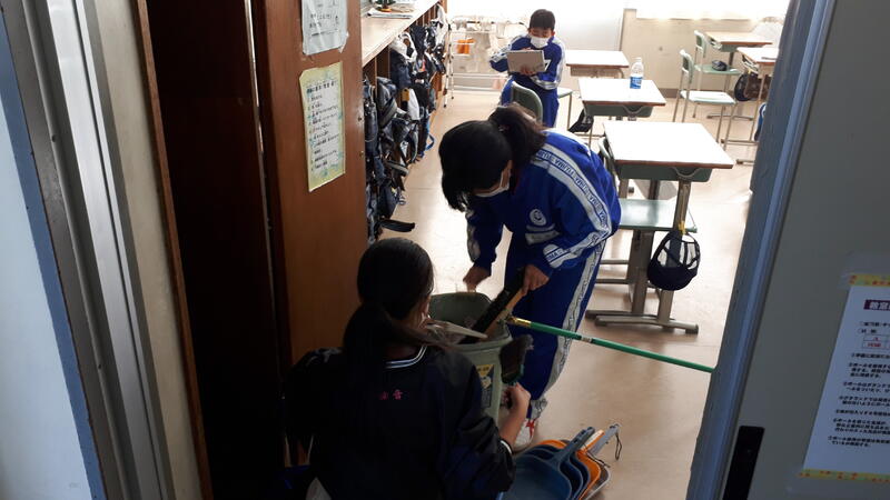 ↳環境美化委員がクラスの清掃用具入れをきれいにしています。