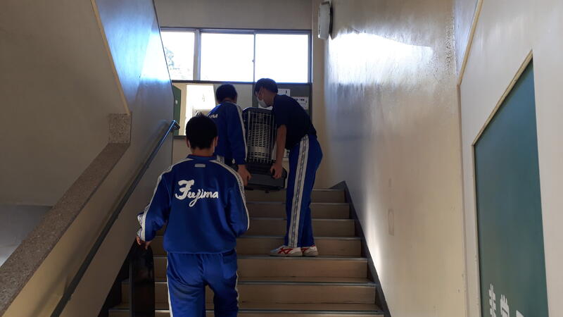 ↳こちらの男子は、寒さに備えて音楽室用のファンヒーターを運搬中。ありがとうね。