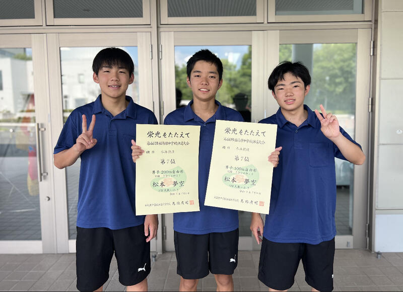 水泳競技は、松本(夢)選手が、100m自由形でも7位に入賞しました。タイムがわずかに届かず東北大会出場とはなりませんでしたが、自由形はエントリー数が多く、激戦の中で100mと200mの入賞は素晴らしい結果となりました。