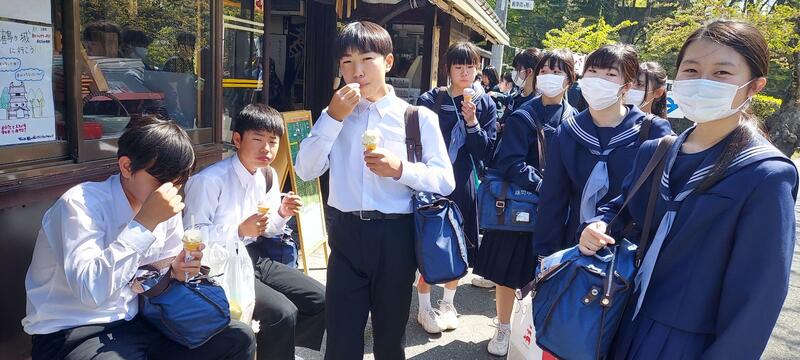 アイスをみんなで食べました。お土産を買いました。顔はめパネルもやりました。楽しい思い出ができました。