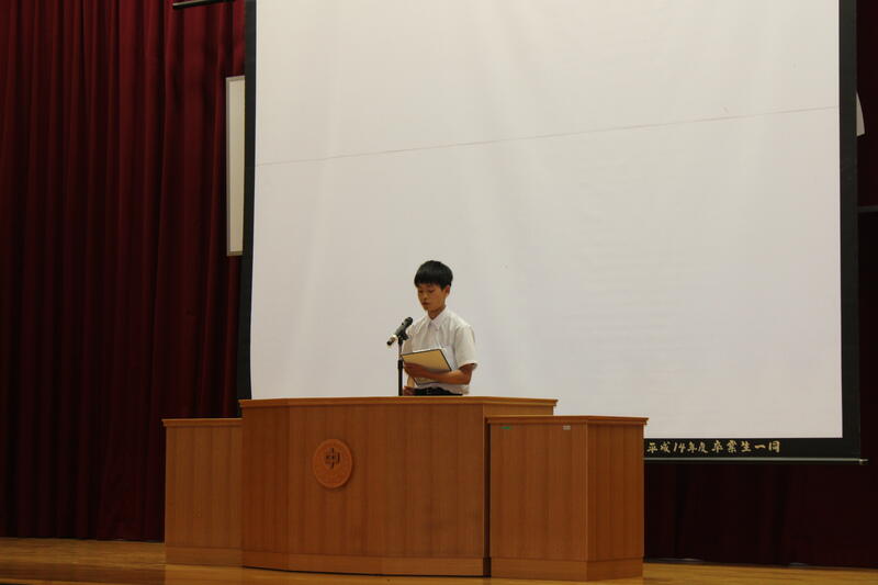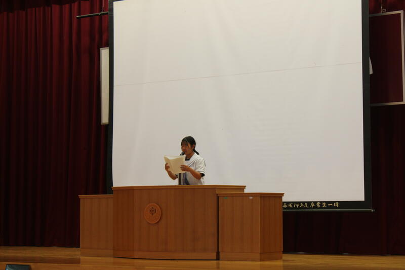 次に、生徒会長のお話、3年2組の大竹さんのマイドリームの発表が行われました。