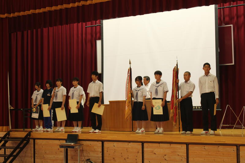 まず、先日行われた市中体連大会での成績をはじめとした表彰が行われました。