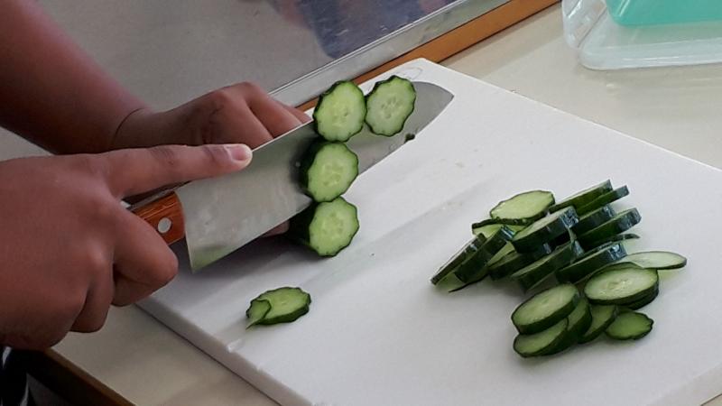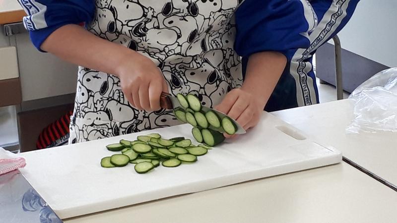 2021年6月15日 11時19分「家庭科で『キュウリの輪切りチャレンジ』があるんですよ~」とのこと。