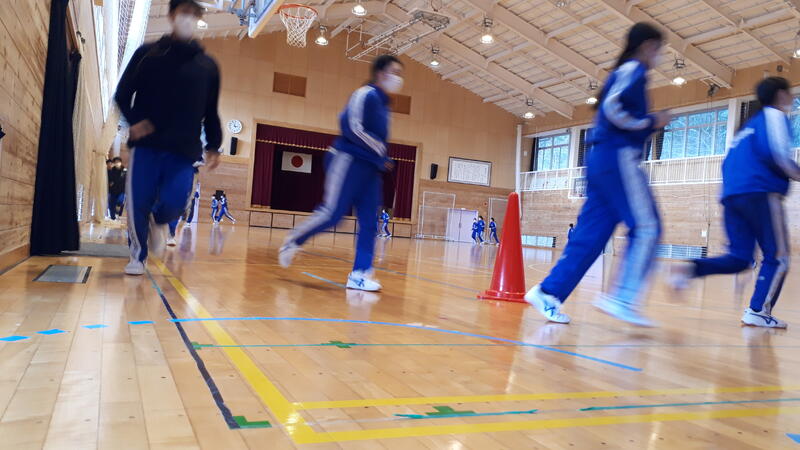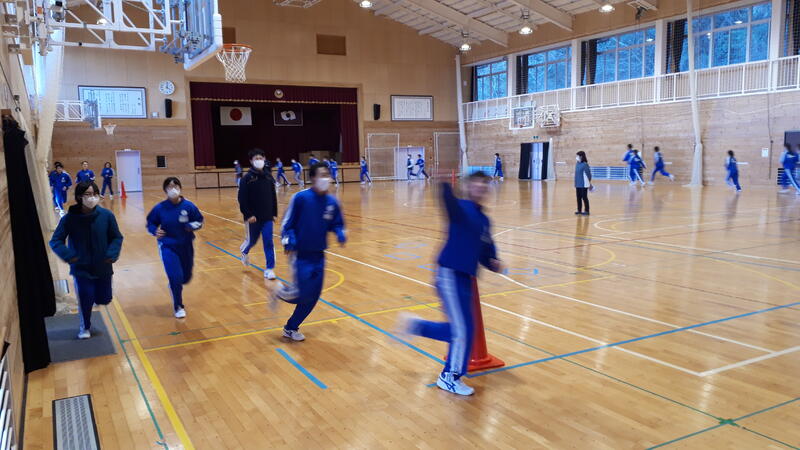 3年生は体育館内を走っています。