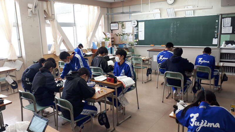 雰囲気は柔らかいものの、室内で自主学習に取り組む生徒が大部分です。