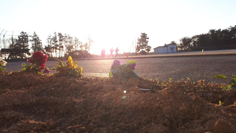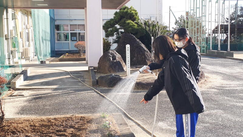 ↳ 花壇に散水しているのはJRC部です。この数分前まで、球根を植えていました。