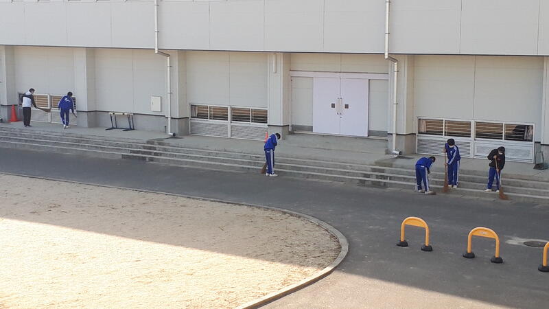 こちらの男子たちが、自主的に砂をきれいに掃きだしてくれました。