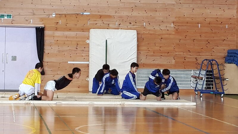 ↳ 体幹を鍛えるバレーボール部。身体を傾けてどこまで耐えられるか。(これは崩れ落ちる瞬間か?)