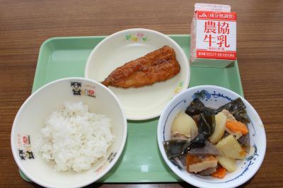 本日の給食献立は、ご飯・牛乳・いわしのあげびたし・味噌煮です。