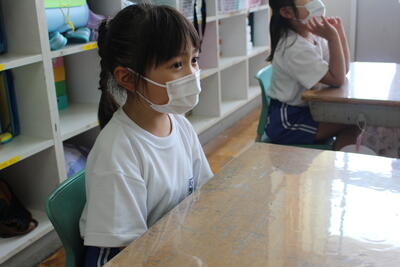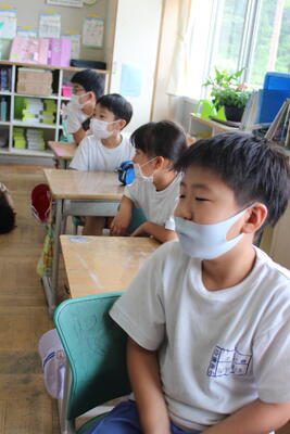 2021年7月16日 12時20分1・2年生への特別授業を、教頭先生(英語科の免許所有、英語科の指導主事経験)の外国語で行いました。