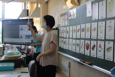 「食べ物や飲み物を英語で言ってみよう。」というめあてで、①あいさつ ②Youtubeで発音トレーニング ③食べ物や飲み物を英語でチャレンジ ④カルタとり という内容で実施しました。
