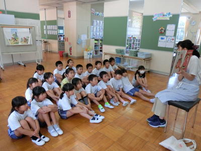 今日の読み聞かせは1年生でした。本は「おへそのあな」。楽しく聞いたその後で、学校司書の先生から・・・