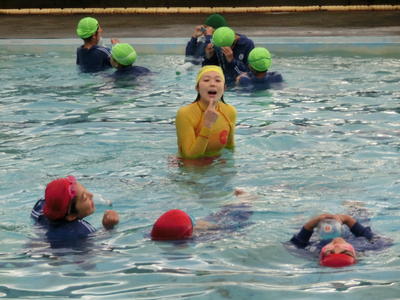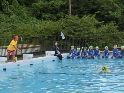 今日で今年度の水泳学習が終了です。毎年最終日には着衣水泳を行っています。今年度は「いわきサーフライフセービングクラブ」より今井恵子先生をお迎えして、5・6年生で特別授業を行いました。