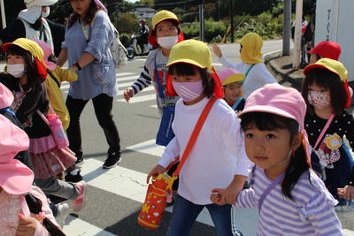 2020年10月28日 13時11分またまた天気にも恵まれて、全園児が園外保育としてスパリゾートハワイアンズ近辺に行ってきました。子ども達同士で助け合い、しかも「だっこ」もなく、歩き通すことができました。(集団で歩く中での学びも大きいものです。)