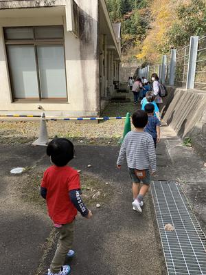 2020年11月19日 16時20分本日、園地内に不審者が侵入してきた場合を想定して避難訓練を行いました。