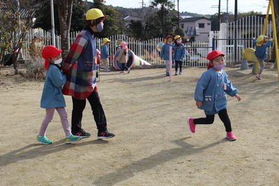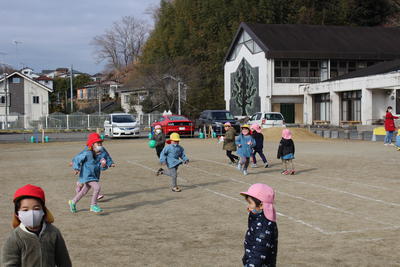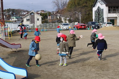 令和3年1月も半分が過ぎました。曇り空ですが、園庭には元気な声が響いています。