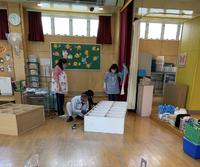 先生たちは、大工さんに変身して、ちょうぐみのお部屋をちょっぴり替えたよ