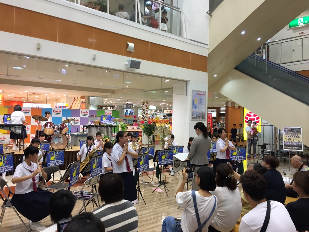 吹奏楽部は,8月20日(日)にはエブリアに招待され,13:00~と15:00~の2回にわたり演奏を行い,来場された方々に喜んでいただきました。音楽のチカラでいわきの皆さんを元気にすることができました。