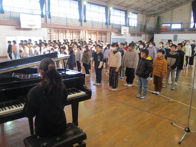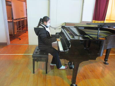 「奇跡のピアノ」の練習中。体育館でも素敵な歌声が響いていました。