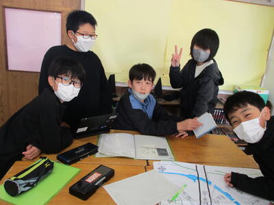 「ここ俺んちー。」「あ、ここ〇〇ちゃん家じゃん。」「これって支所だよね。」など、地図で確認しながら、津波がきたときの安全な場所や危険な場所を確認しました。