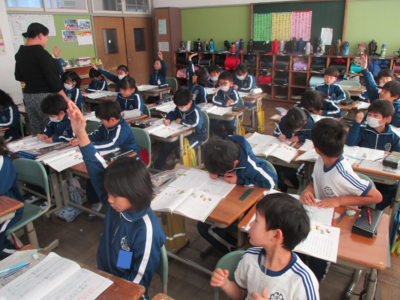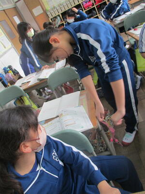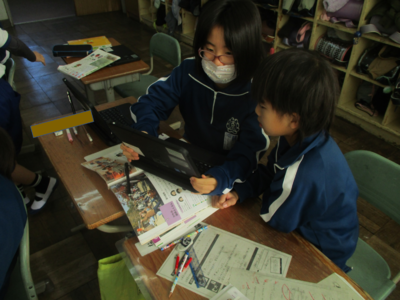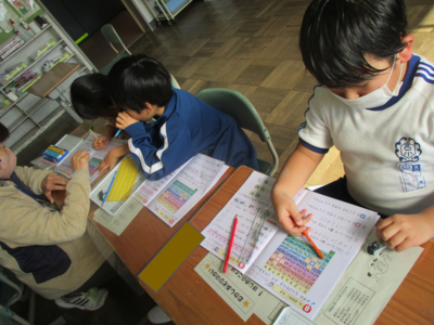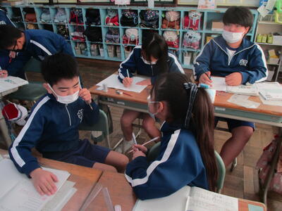 1年生は、これから行う予定の「昔遊びの会」について計画を立てていました。楽しみですねー。