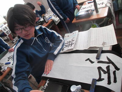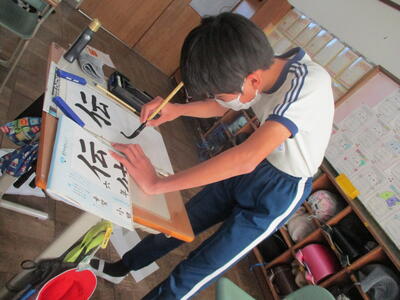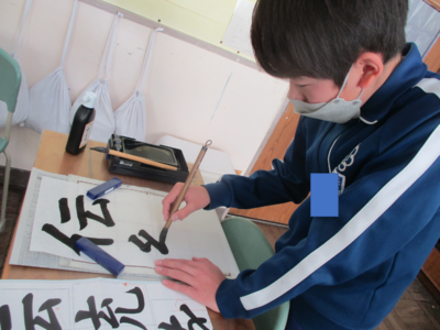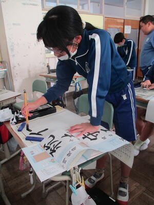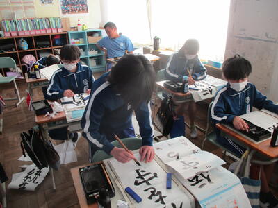 3・4年生は書き初めの練習中。なかなかの力作ぞろいです。