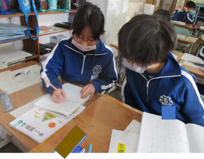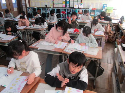 2、4年生、くろしお学級では、2学期の総復習を行ったり、冬休みの計画を立てたりしていました。