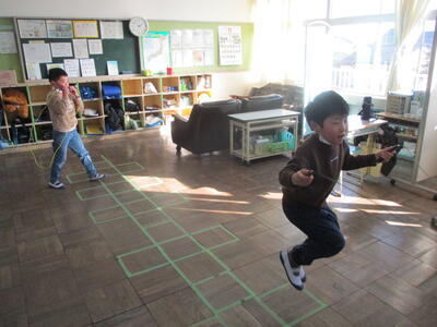 さて、今週も元気にスタートしました。昨日の雨で残念ながら校庭は使用できませんでしたが、教室で工夫して過ごしていた子ども達です。