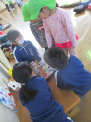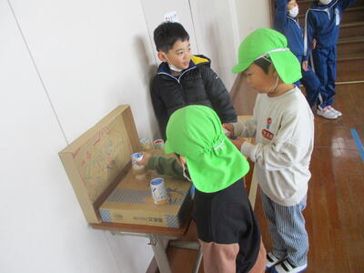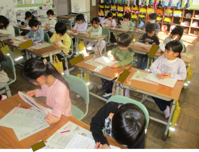1年生は、幼稚園生が来るときに行う、お店屋さんごっこのカード作りに夢中でした。