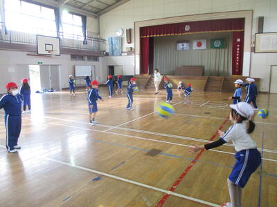 6年生はバレーボールの練習中でした。ソフトバレーボールを用いたりルールを変えたりして、みんなが楽しめるように工夫して練習しています。まざりたかったなあ・・・。