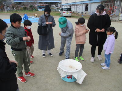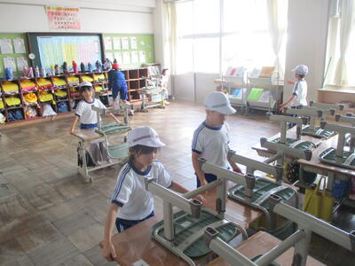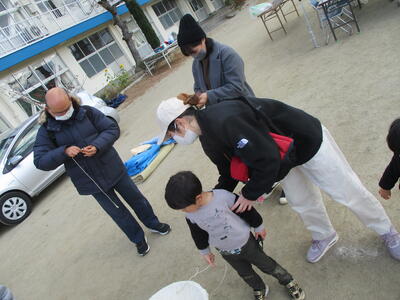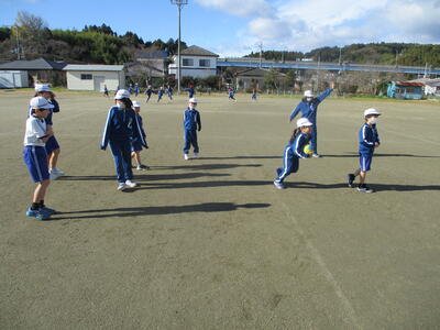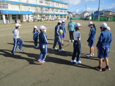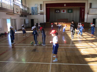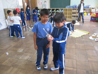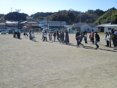 2年生はミニ運動会で楽しんでいました。ぐるぐるタイフーンです!