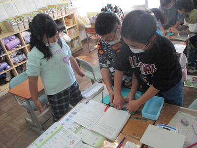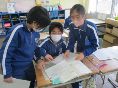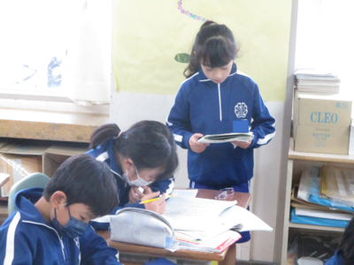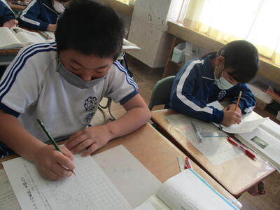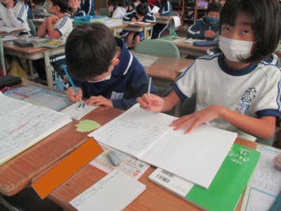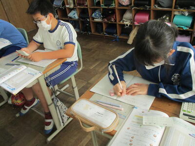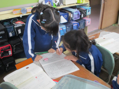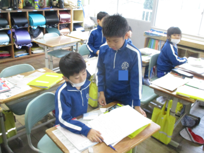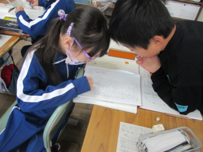 3・4年生はテスト直しをして、次回間違えないよう復習していました。友達との学び合いが上手です。