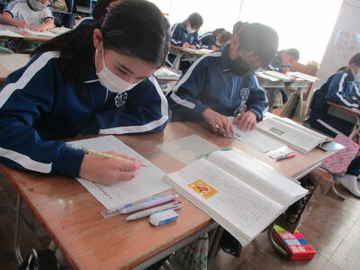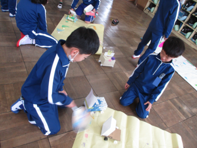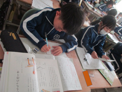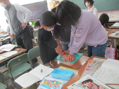 1年生は冬休みに向けての準備が着々と進んでいます。その封筒づくりです。