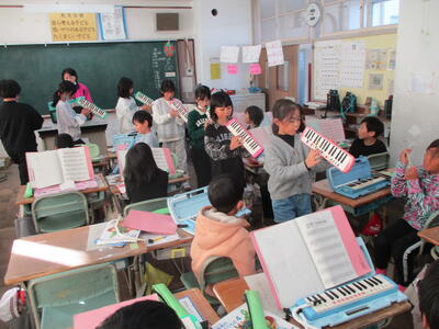 2年生は、冬休みに持ち帰るタブレットで何をするのかについて、担任の先生とICTサポーターの先生に教えてもらっています。いろいろなことができそうですね。