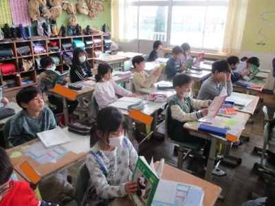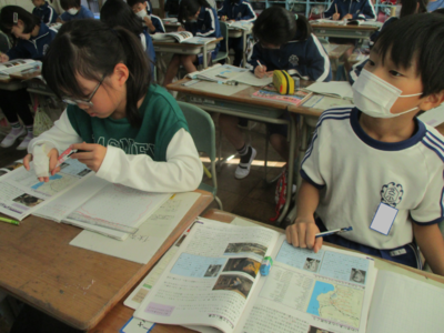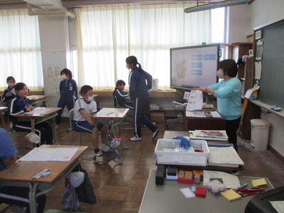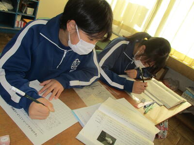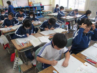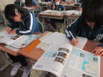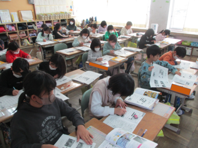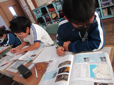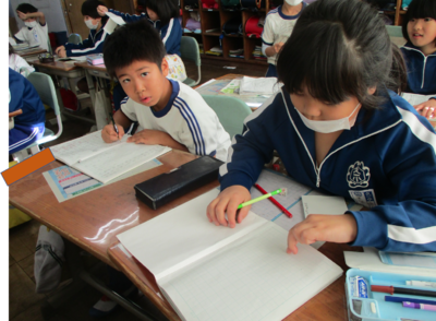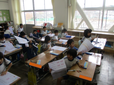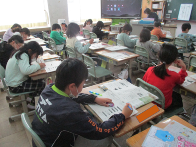 3年生は総合的な学習の時間。2学期学習してきたことを、ファイルにまとめていました。