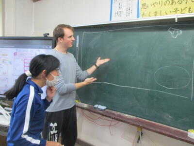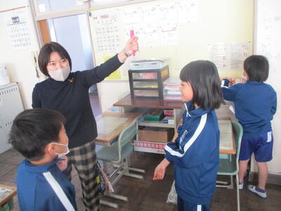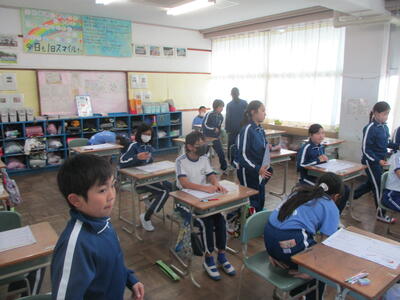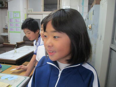 担任からの問いかけに、子ども達は考えます。ちょうど半数に分かれました。