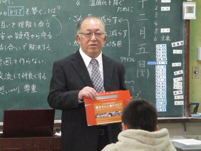 「楽しい冬休みにするために」のプリントを配付して指導しましたので、ご家庭でもご確認をお願いいたします。