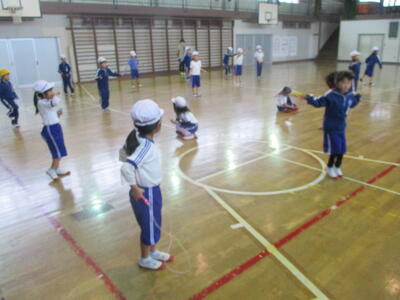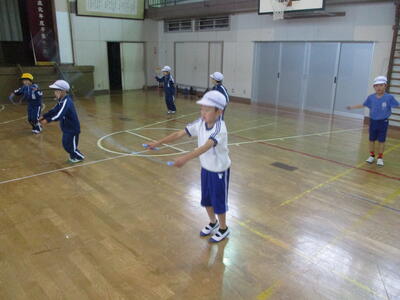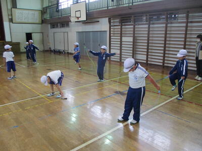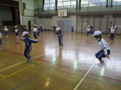 前跳びや後ろ跳び、駆け足跳びなど、あっという間の1年生の成長にびっくりでした。