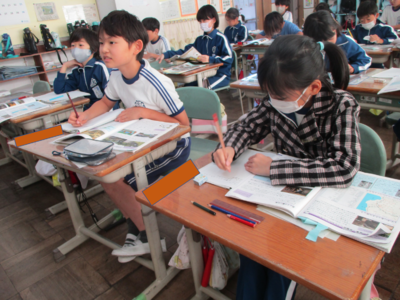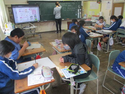 昨日も久之浜大久まちづくりサポートチームの栗田様、遠藤様においでいただき、6年生の総合的な学習の時間でご指導いただきました。