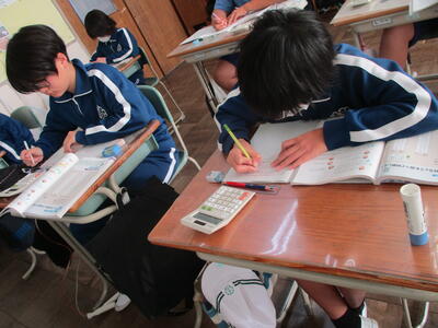 4年生は小数のわり算の筆算問題に取り組んでいました。これ難しいんですよねえ・・・。